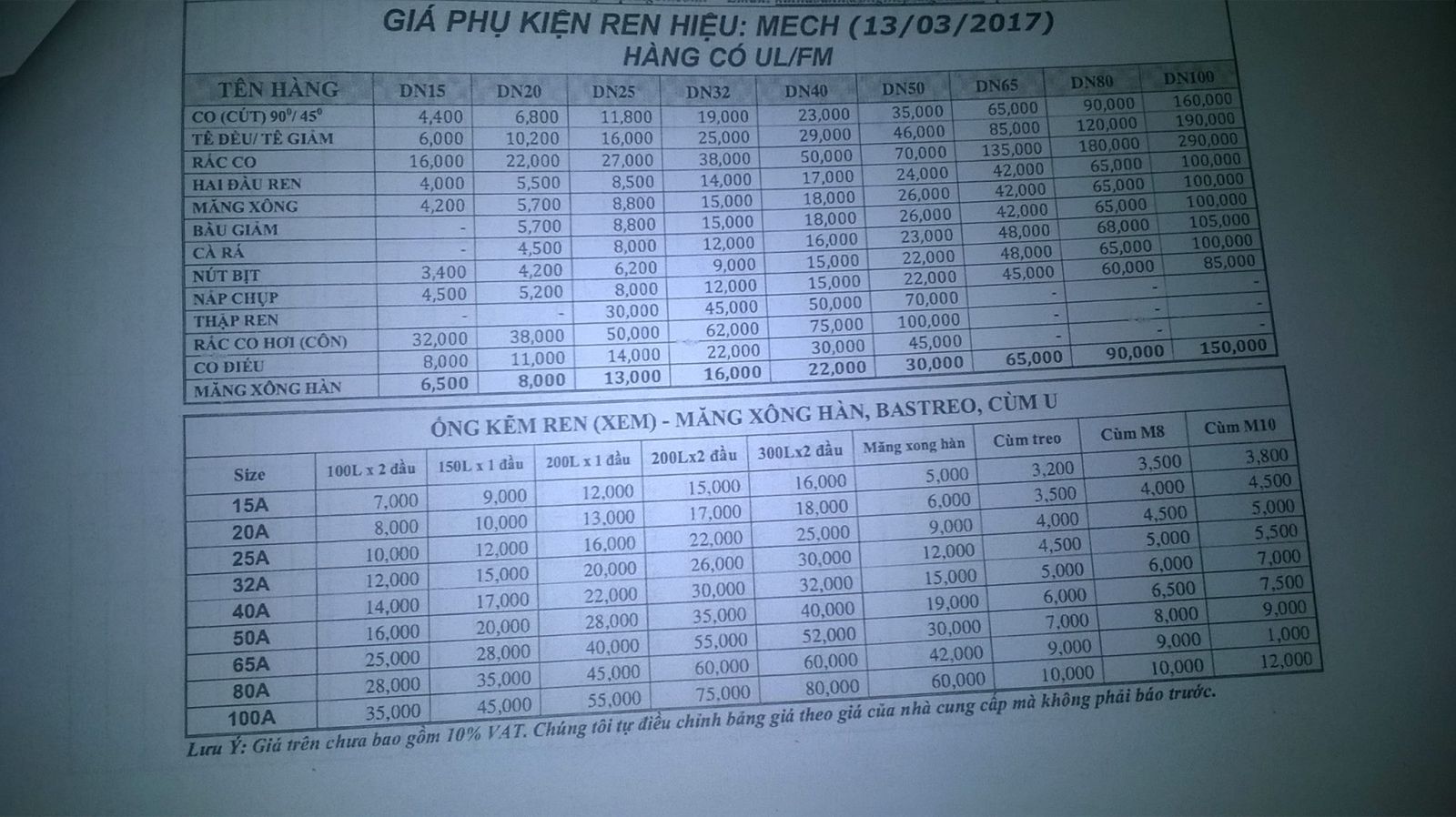 Công Ty TNHH SX KD & XNK Minh Hưng Thuận gửi tới tất cả Quý Khách Hàng Bảng Giá Phụ Kiện ren Mech: Co, Tê, Bầu Giảm, Măng sông, kép, cà rá, rắc co,...