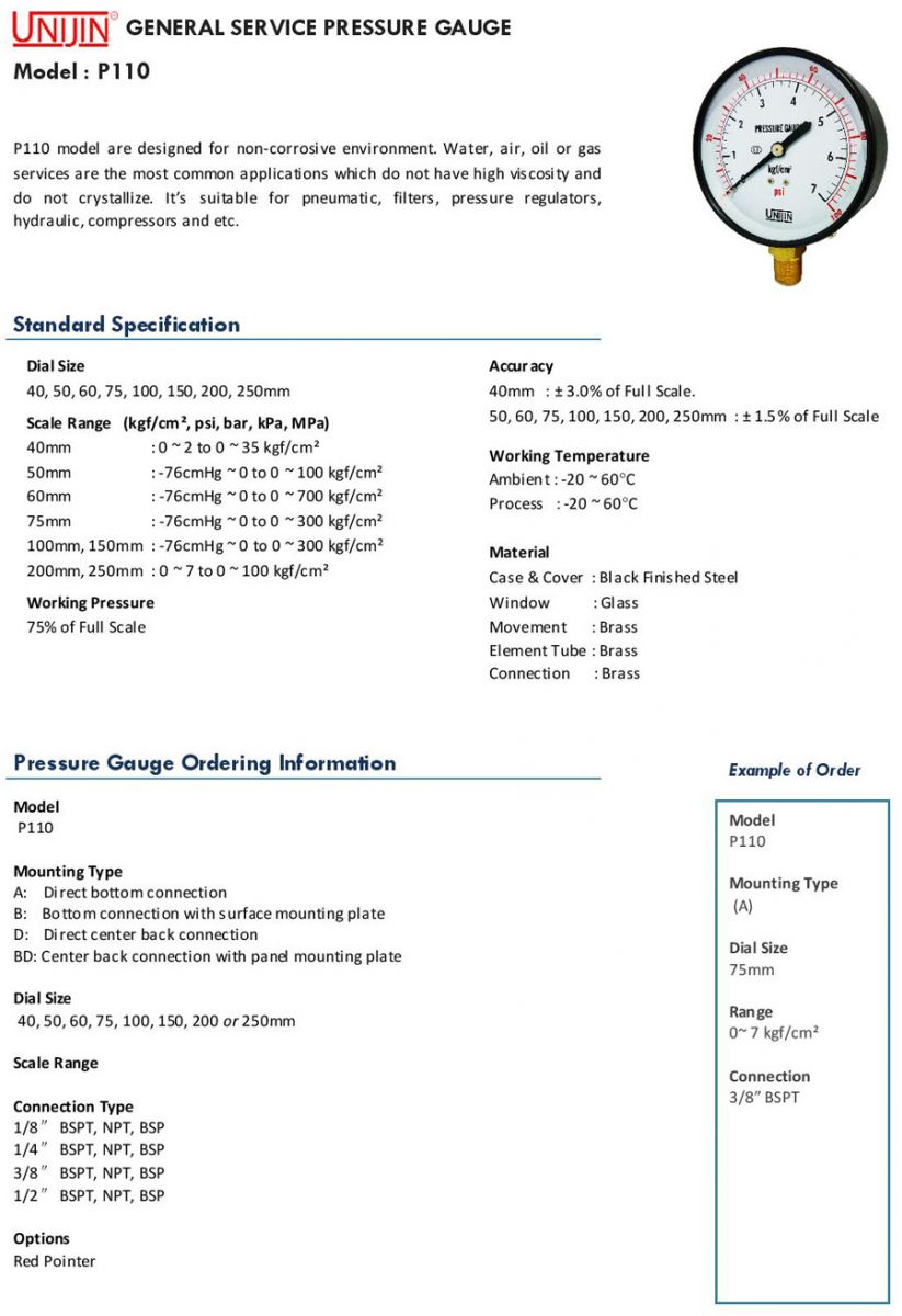 • Đồng hồ áp suất Unijin P110