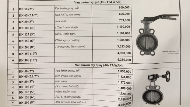 + Bảng Giá Van Bướm Các Loại JAKI - Taiwan